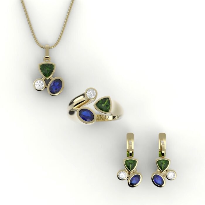 Alle aanpassingen zijn mogelijk. Verkrijgbaar in 18/14 karaat, verschillende maten én in gewenste edelsteen/materiaal kleurcombinatie.